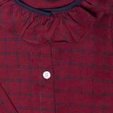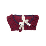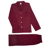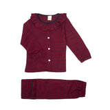 • Pijama otoño de manga larga para niñas, tela de franela color rojo con cuadros azules.